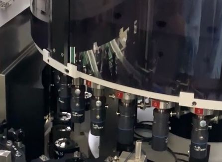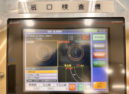 充填から装栓まで、ラミナーフロー下で行っています。一部のラインでは装栓前のビン口部の検査機を導入しています。