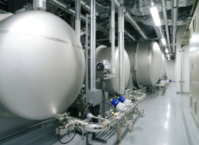 製剤調製時において、タンク・配管などを窒素バブリング/窒素置換しています。また、一定の窒素加圧下での圧力保持も可能です。送液・充填時においても窒素バブリング、窒素による送液、窒素置換を行うなど、最適な製造条件を実現しています。