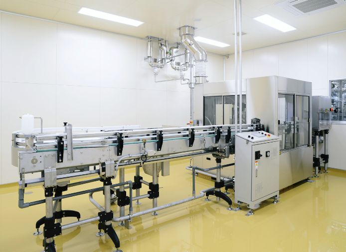 常水、精製水、UF水などを使用する洗瓶工程を備えた自動洗瓶機を導入しています。